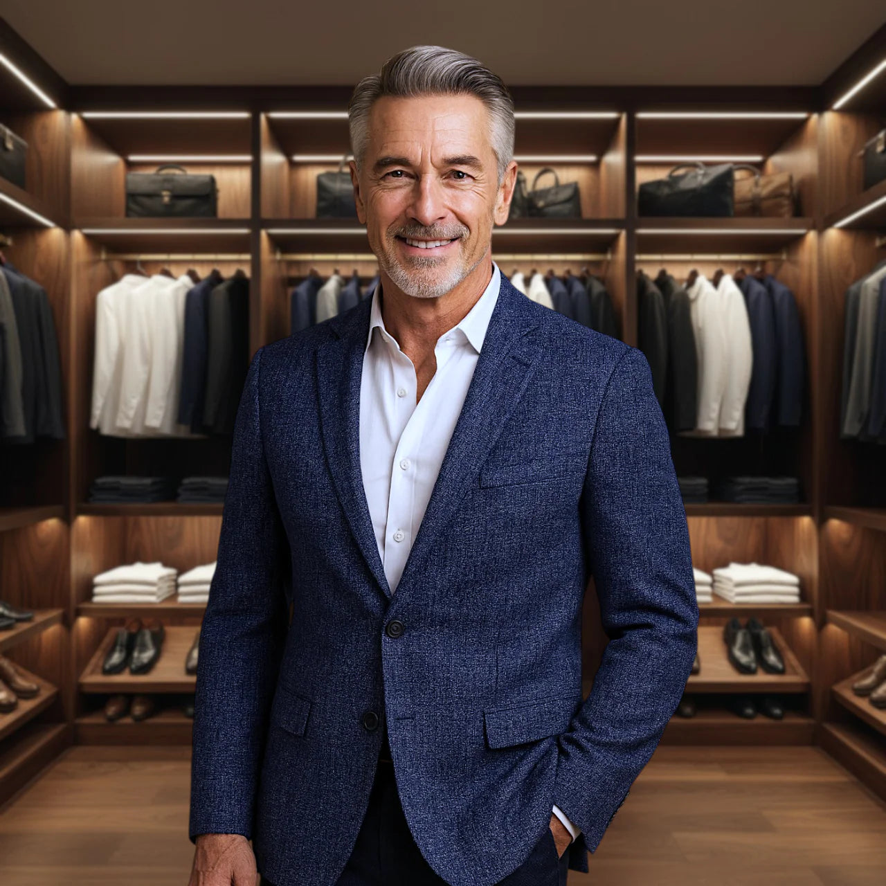 Questa giacca rappresenta l’incontro perfetto tra la sartoria classica e il gusto dell’uomo di oggi. Le sue linee pulite, la struttura leggera e l’equilibrio delle proporzioni trasmettono sicurezza e raffinatezza senza eccessi. È dedicata all’uomo che desidera apparire impeccabile, ma mai artificiale — perché la vera eleganza è naturale.