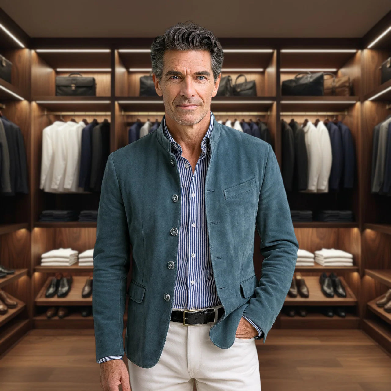 Questa giacca è ispirata allo stile dei gentiluomini italiani d’altri tempi, reinterpretata per l’uomo moderno che conserva il gusto della distinzione. Il collo alla coreana e la linea pulita trasmettono sobrietà e autorevolezza, fondendo tradizione e modernità in un capo che parla di carattere, equilibrio e rispetto per l’arte del vestire.
